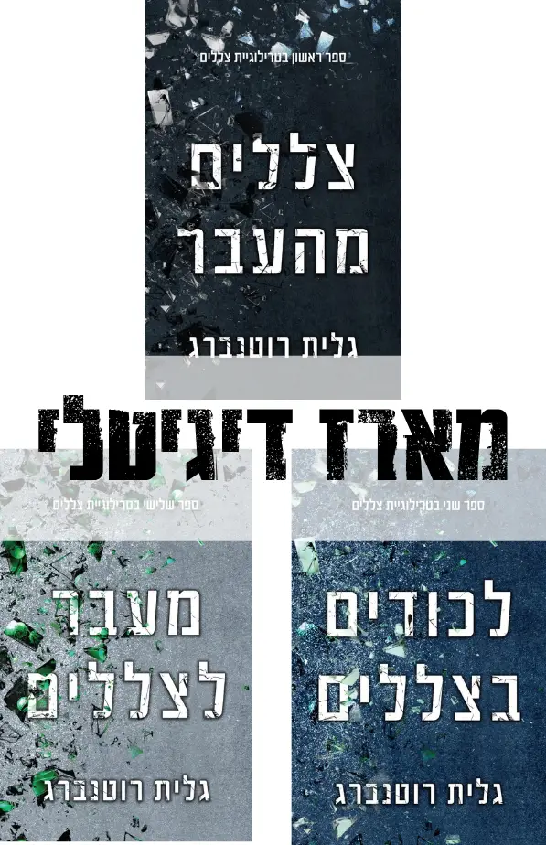 -17% מים סוערים – ספר דיגיטלי ₪35.00 המחיר המקורי היה: ₪35.00.₪29.00המחיר הנוכחי הוא: ₪29.00. כמות של מים סוערים - ספר דיגיטלי הוספה לסל -17% טרילוגיית צללים – מארז דיגיטלי ₪105.00 המחיר המקורי היה: ₪105.00.₪87.00המחיר הנוכחי הוא: ₪87.00. כמות של טרילוגיית צללים - מארז דיגיטלי הוספה לסל -17% צללים מהעבר – ספר 1 בטרילוגיית צללים דיגיטלי ₪35.00 המחיר המקורי היה: ₪35.00.₪29.00המחיר הנוכחי הוא: ₪29.00. כמות של צללים מהעבר - ספר 1 בטרילוגיית צללים דיגיטלי הוספה לסל -17% לכודים בצללים – ספר 2 בטרילוגיית צללים דיגיטלי ₪35.00 המחיר המקורי היה: ₪35.00.₪29.00המחיר הנוכחי הוא: ₪29.00. כמות של לכודים בצללים - ספר 2 בטרילוגיית צללים דיגיטלי הוספה לסל -17% מעבר לצללים – ספר 3 בטרילוגיית צללים דיגיטלי ₪35.00 המחיר המקורי היה: ₪35.00.₪29.00המחיר הנוכחי הוא: ₪29.00. כמות של מעבר לצללים - ספר 3 בטרילוגיית צללים דיגיטלי הוספה לסל גיפט קארד ₪50.00 – ₪1,000.00טווח מחירים: ₪50.00 עד ₪1,000.00 בחר סכום למוצר זה יש מספר סוגים. ניתן לבחור את האפשרויות בעמוד המוצר